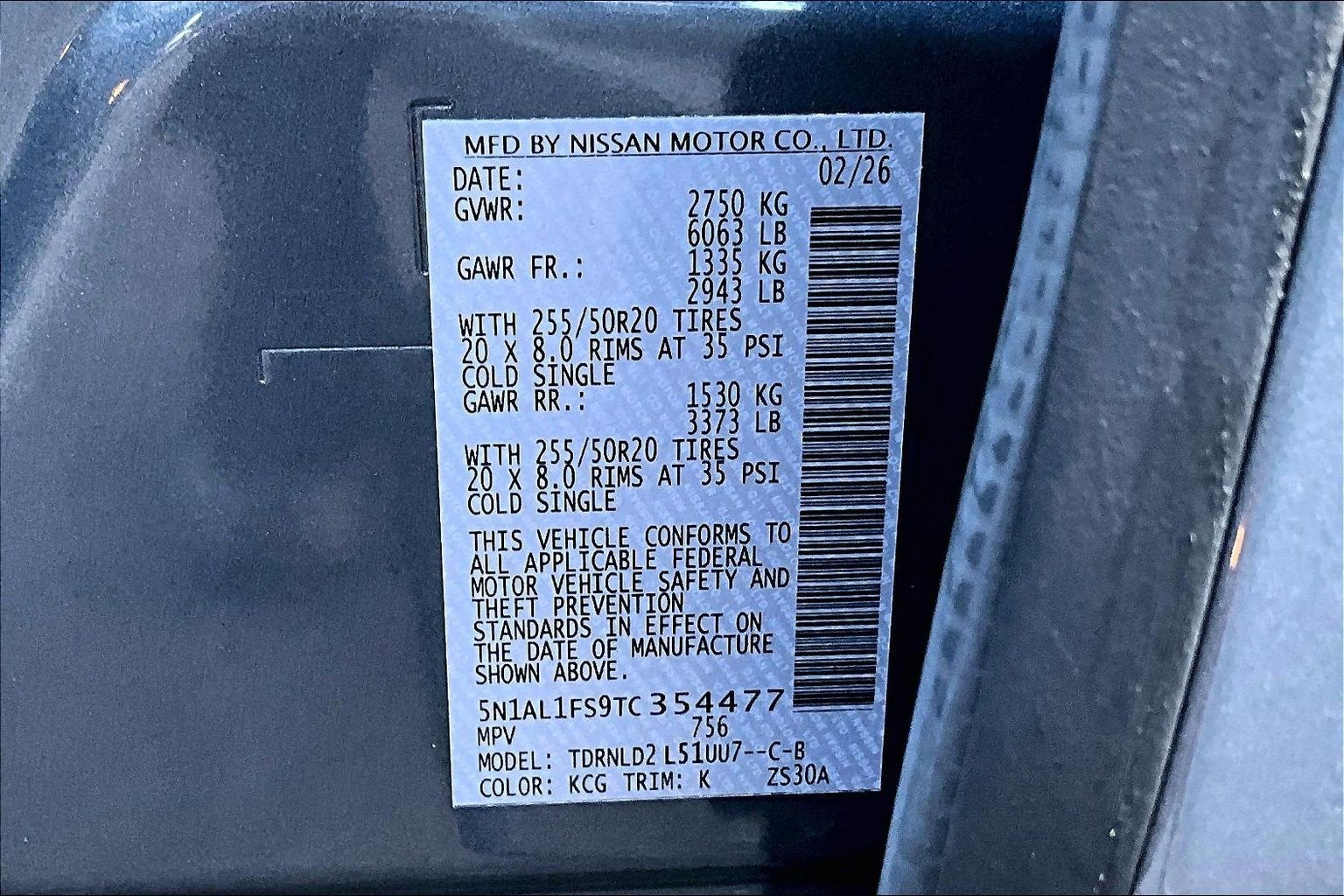 - Tires: P255/50R20 All-Season