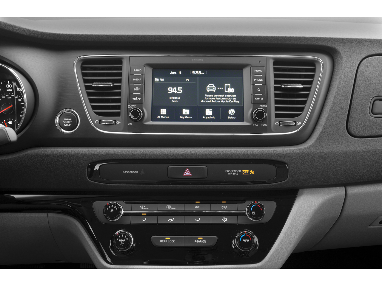 - Radio: AM/FM Audio System -inc: 6 speakers 7.0" display UVO3 SIRIUS Android Auto and Apple CarPlay rear camera display TMU USB/auxiliary input jacks and front row and back of center console rapid charging USB
