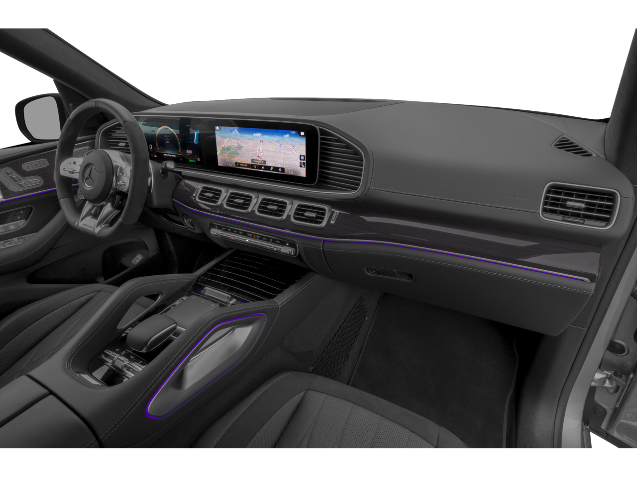 Step inside the GLE 63 S AMG® and be enveloped in a world of uncompromising luxury. Exclusive Nappa Leather upholstery, heated and ventilated front seats, and a premium audio system create an unrivaled sensory experience. The MBUX infotainment system seamlessly integrates your digital life, while the wide screen cockpit provides a commanding view of the road ahead.