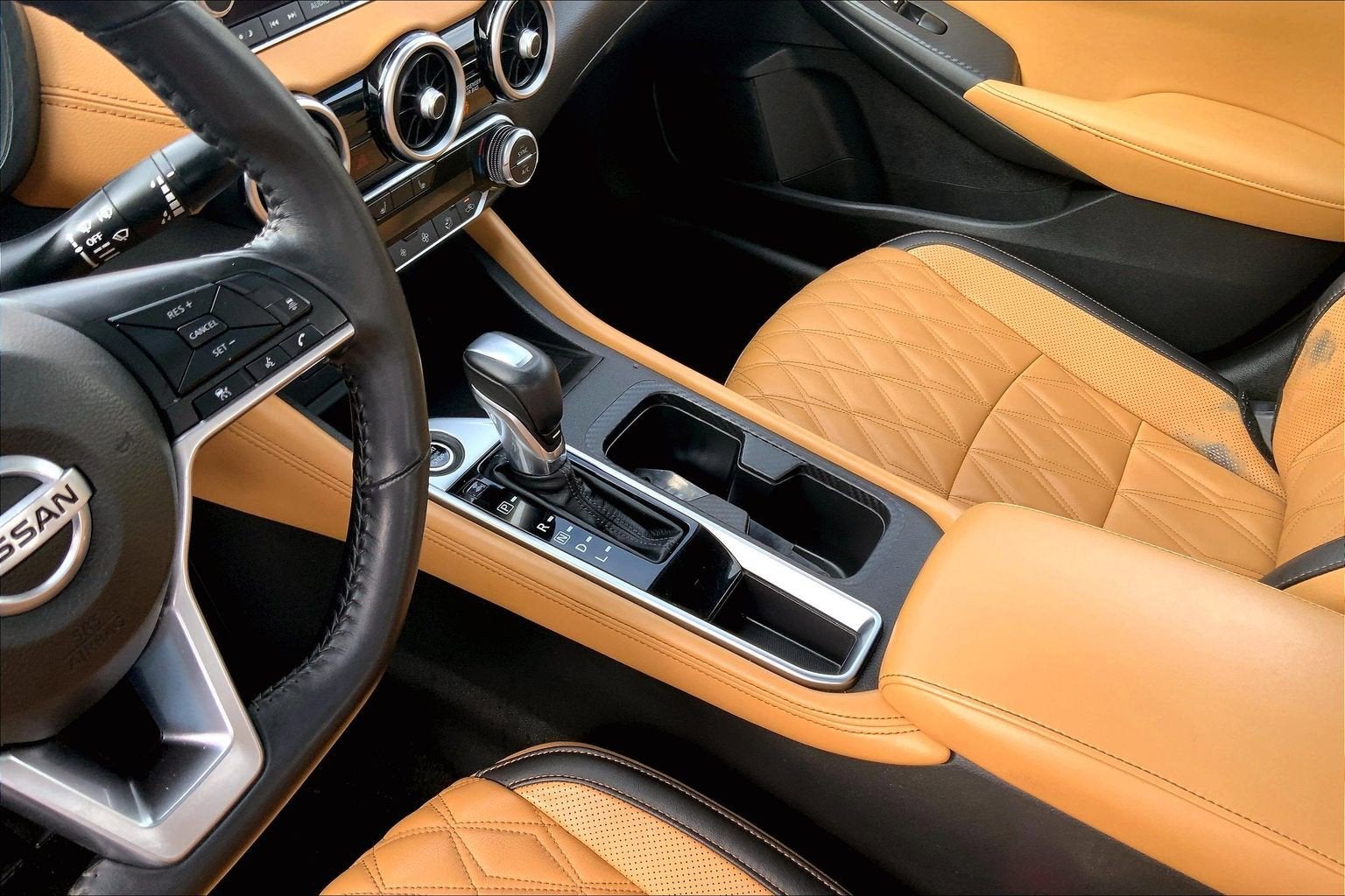 - TAN QUILTED LEATHER SEAT TRIM -inc: Front and rear