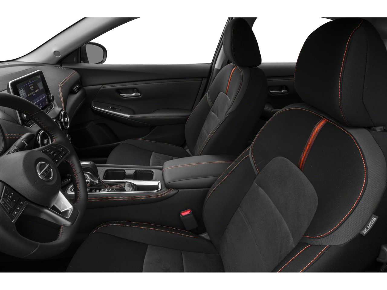 The Sentra SR's sleek, sporty exterior is complemented by 18-inch alloy wheels, a rear spoiler, and body-color mirrors and bumpers. The interior boasts premium cloth seating, a leather-wrapped steering wheel, and an array of thoughtful touches that elevate your driving experience.
