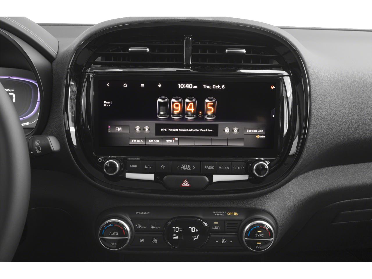 - Radio: AM/FM/MP3/HD Audio System -inc: UVO link navigation SiriusXM 10.25" color touch screen 6 speakers support for Android Auto and Apple CarPlay USB input audio remote control Bluetooth® hands-free w/voice recognition and black shark fine type antenna