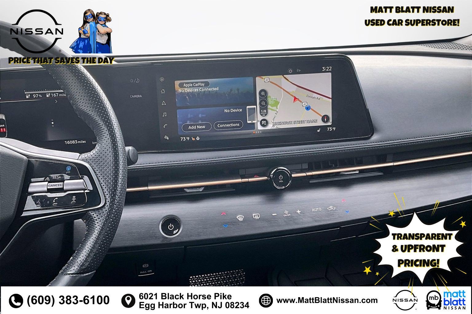 Matt Blatt has been serving New Jersey, Pennsylvania, Delaware, and New York for over 30 Years! Matt Blatt NISSAN is fully committed to maintaining a customer-first approach. Our team of professionals is dedicated to keeping the process quick and easy, putting YOU in control of the whole experience. We look forward to providing you with the finest vehicles and services! Buy with confidence knowing this vehicle has earned its place in our inventory by passing our rigorous multi-point inspection and reconditioning process by our 100% Certified Technicians and it is ready for many miles of reliability and comfort. TRANSPARENT & UPFRONT PRICING WITH NO HIDDEN FEES. We are constantly updating and strategically pricing our inventory to make sure you get a great price without having to be a great negotiator. Carfax is available free of charge on all of our vehicles.