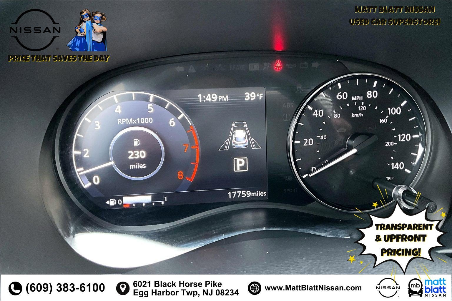 Matt Blatt has been serving New Jersey, Pennsylvania, Delaware, and New York for over 30 Years! Matt Blatt NISSAN is fully committed to maintaining a customer-first approach. Our team of professionals is dedicated to keeping the process quick and easy, putting YOU in control of the whole experience. We look forward to providing you with the finest vehicles and services! Buy with confidence knowing this vehicle has earned its place in our inventory by passing our rigorous multi-point inspection and reconditioning process by our 100% Certified Technicians and it is ready for many miles of reliability and comfort. TRANSPARENT & UPFRONT PRICING WITH NO HIDDEN FEES. We are constantly updating and strategically pricing our inventory to make sure you get a great price without having to be a great negotiator. Carfax is available free of charge on all of our vehicles.
