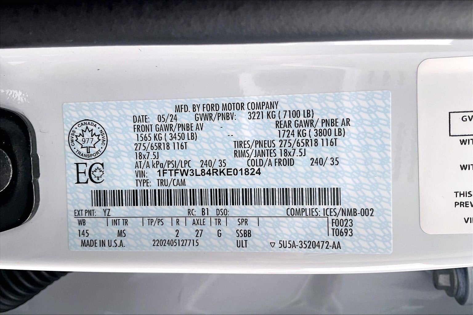 - Gross Vehicle Weight Rating Cap (lbs): 6650