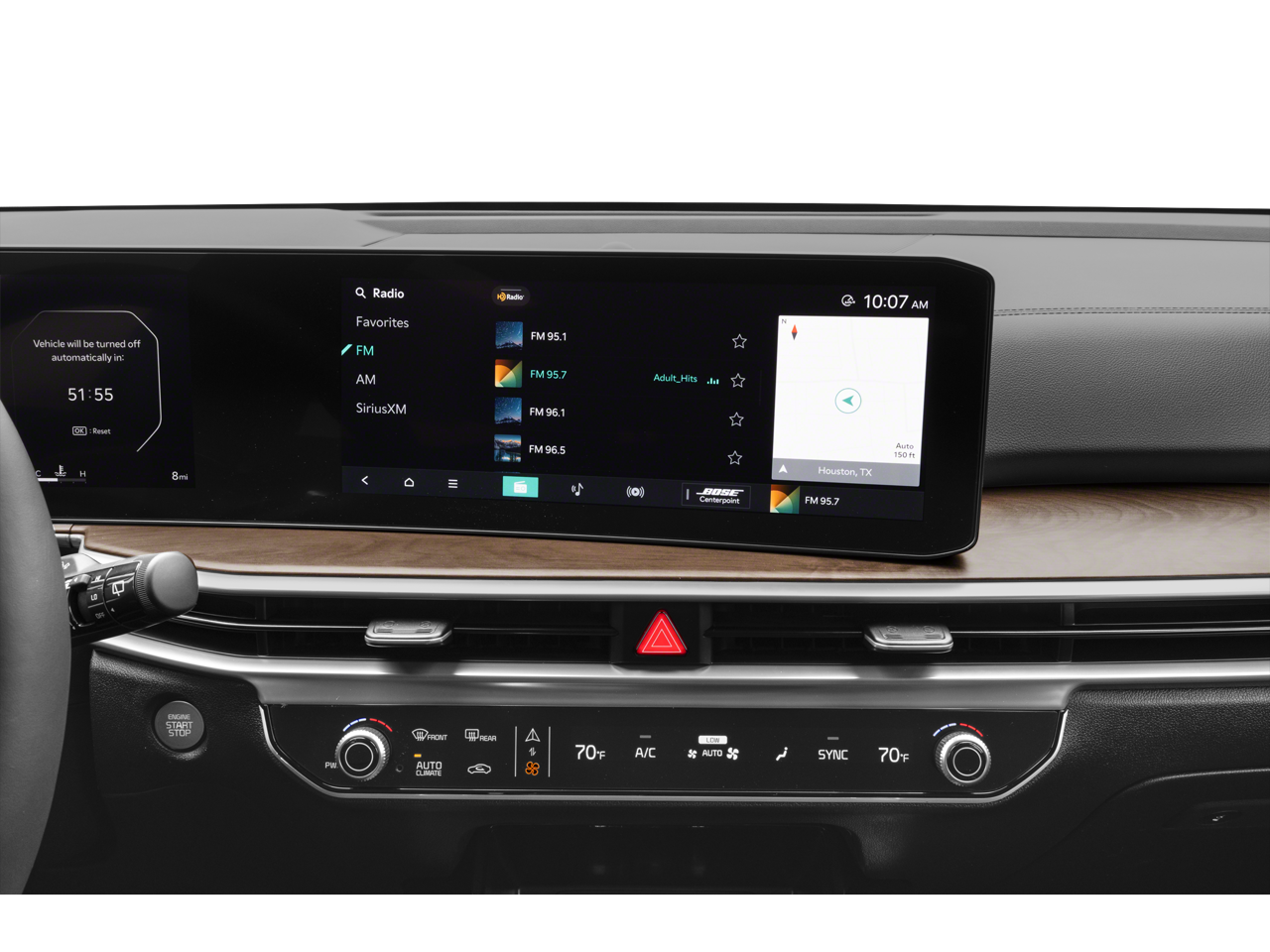 - Radio: AM/FM Bose Premium Audio System -inc: 12.3" curved display, navigation, HD Radio, Bluetooth® w/audio remote control, wireless Android Auto and Apple CarPlay, voice recognition, Sirius XM, Kia Connect, Wi-Fi hot spot, Over-The-Air Updates (OTA), 12 speakers including subwoofer, center channel, external amp and USB